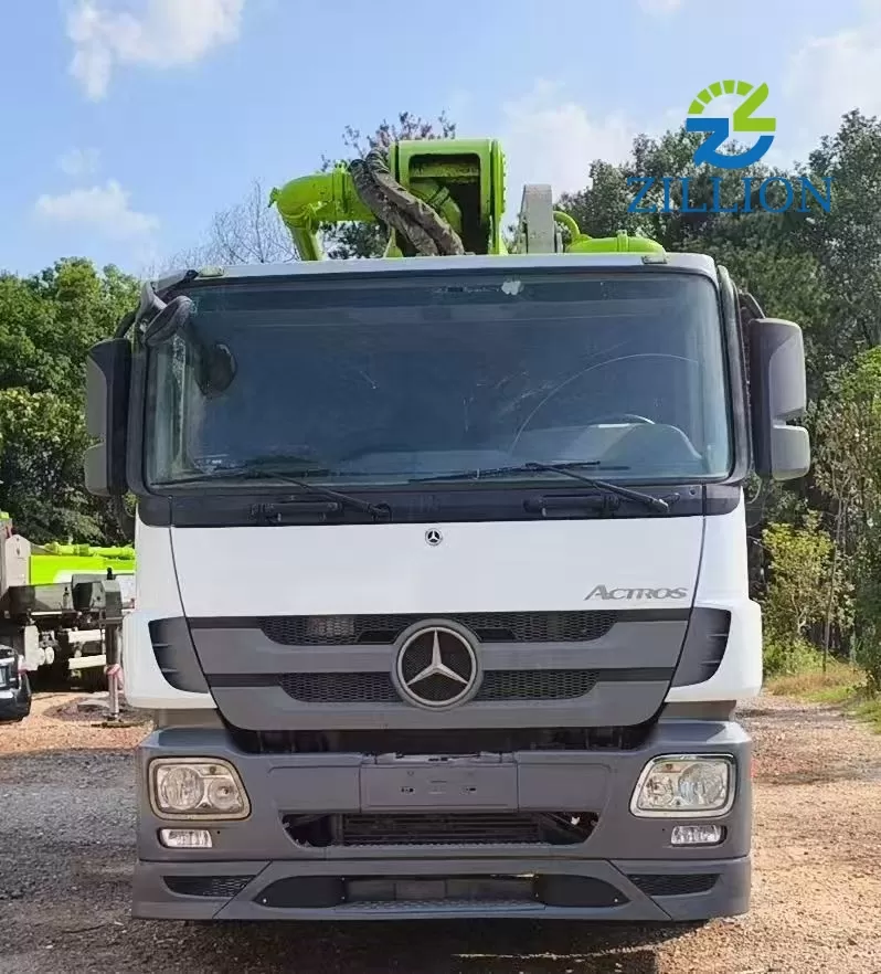 The 2018 Zoomlion 47 m truck-mounted concrete pump truck, built on a Mercedes-Benz chassis, is designed to meet the demands of medium- to high-rise construction and various infrastructure projects. The Mercedes-Benz chassis delivers strong load-bearing capacity, stable driving performance, and reliable operation under complex job site conditions.